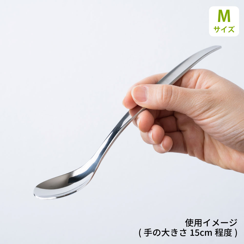加齢などによる口の筋力低下やご病気でいままのように自由に口が開けられない、どのような状況でも美味しく食事をしたい想いに答えたい。『口あたりなめらか、手にしっくりなじむ』運動量が低下してもこの感覚を実現したフラットライト。