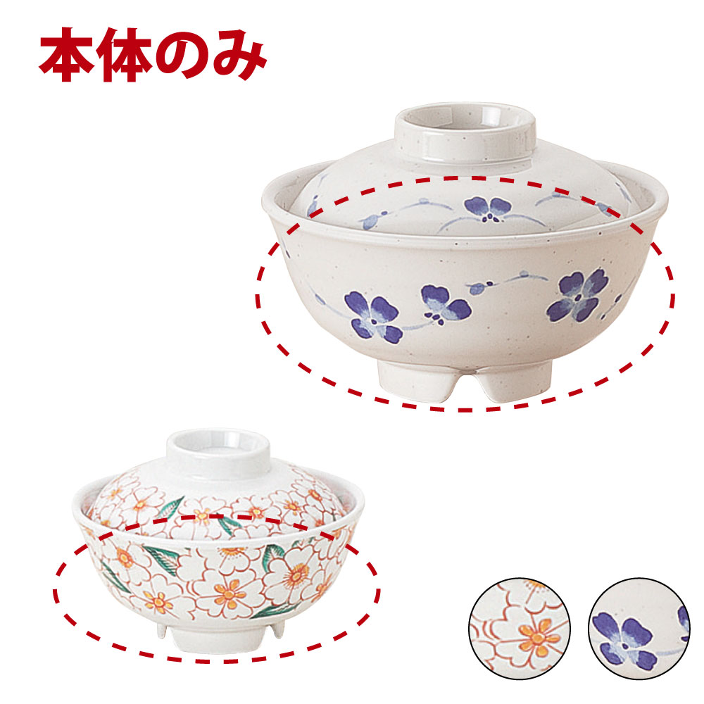 丈夫でお手入れ簡単なメラミン樹脂製。こちらの商品はお椀のみです。フタはついていません。※煮沸消毒・食洗器対応