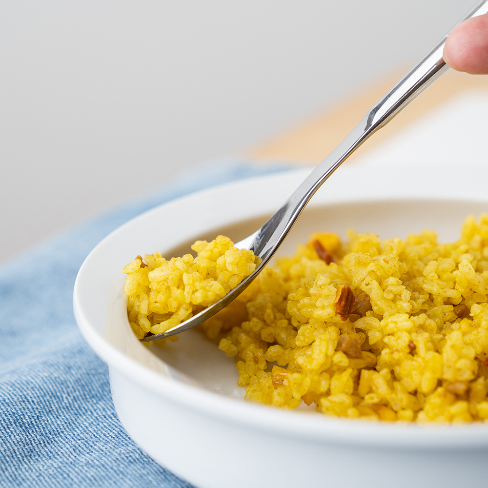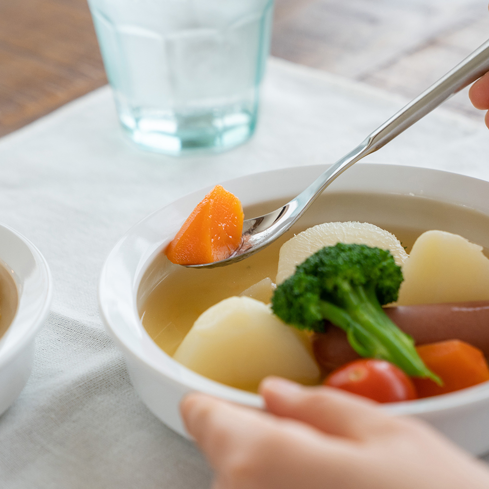 皿の内側一周、反り返しがありすくいやすいユーディウェーブ深皿。お皿も適度な重量感で片手でも食材をきちんとすくえます。