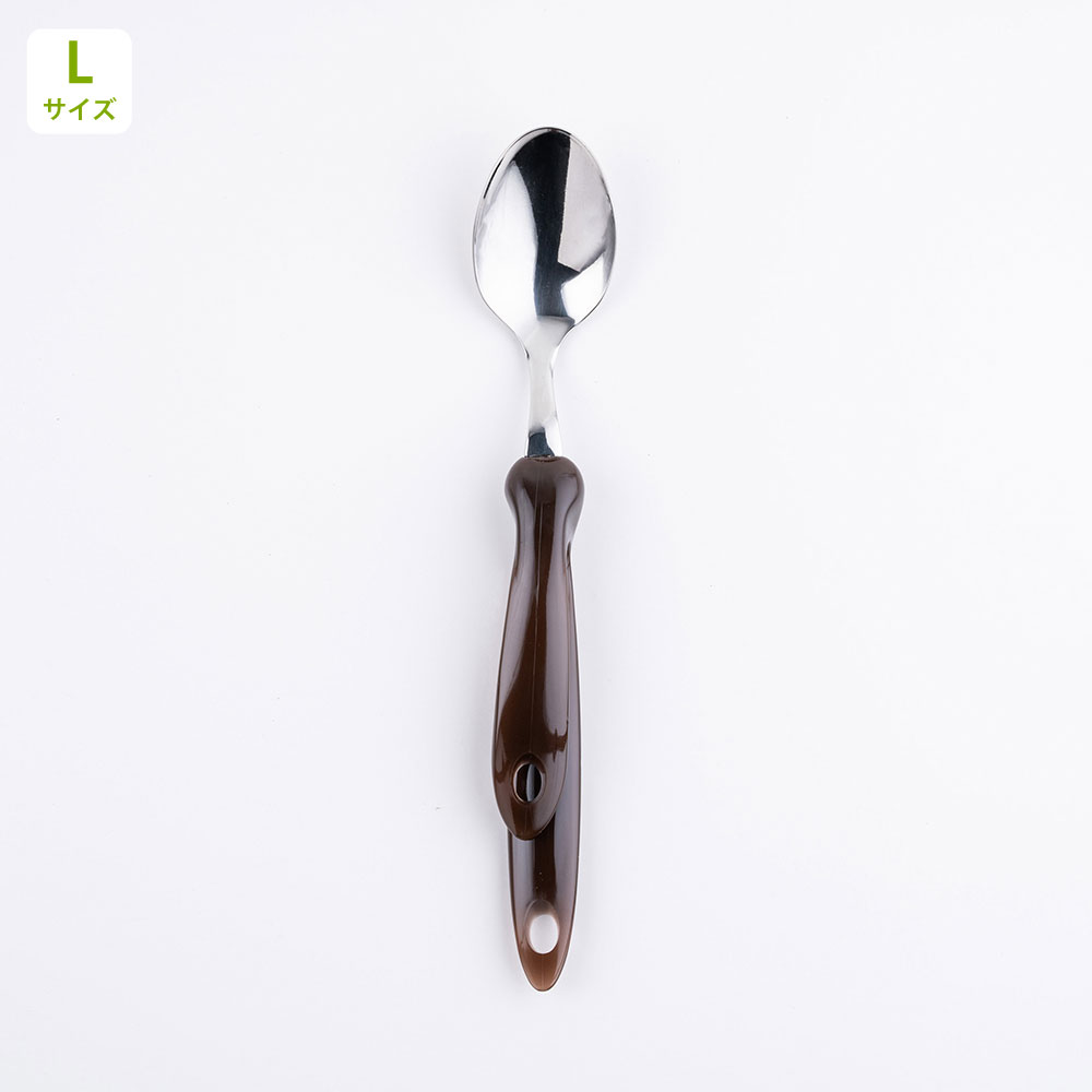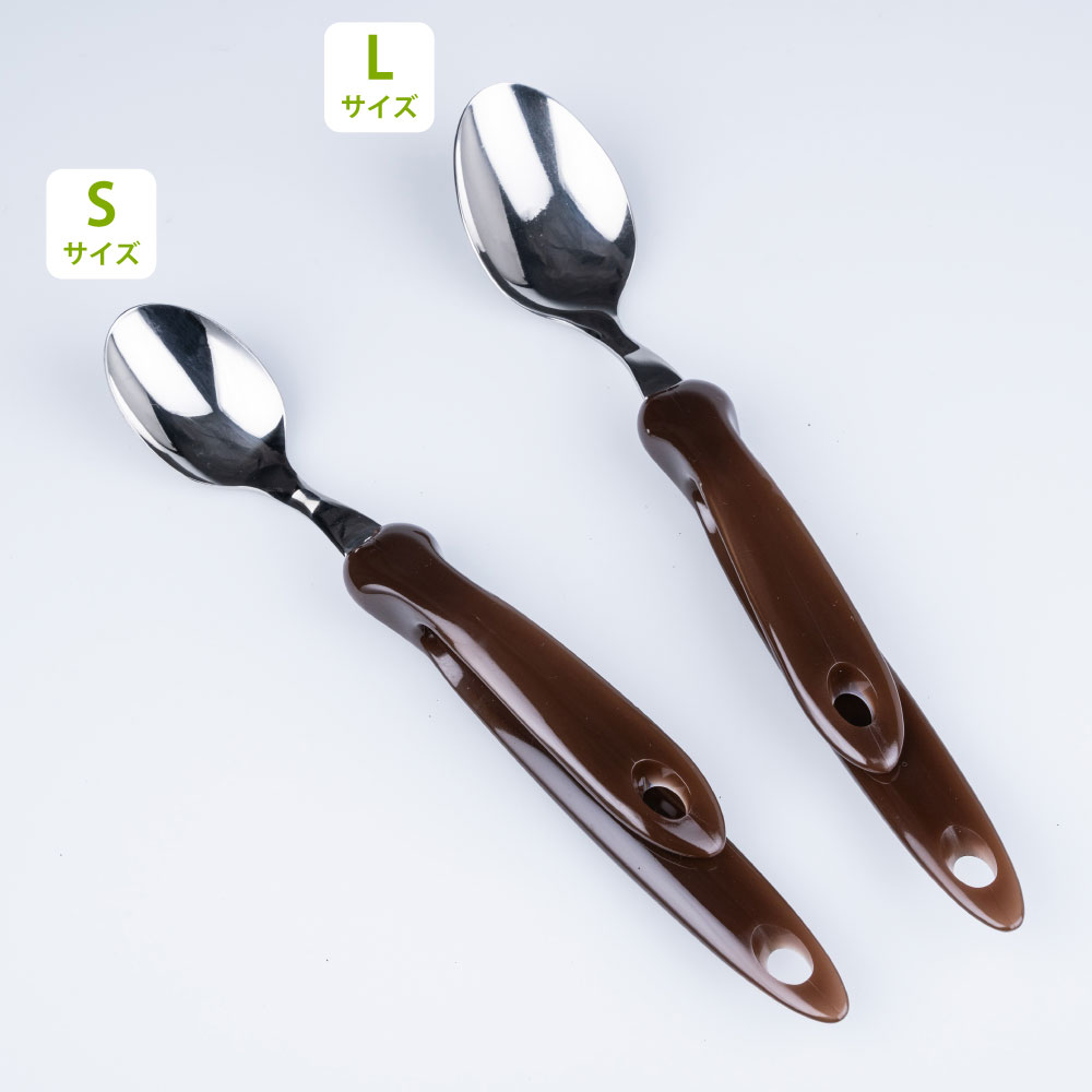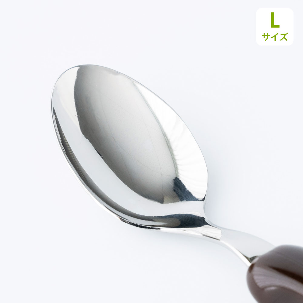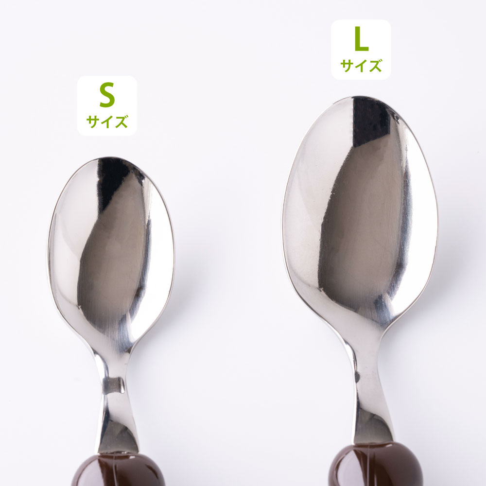 18-8ステンレスで出来たヘッドは種類も豊富で、スプーンはS,Lと2サイズ、スプーンとフォークが一体化した先割れタイプのユニバーサルタイプ。お口の開くサイズに体型に合わせてお選びいただけます。