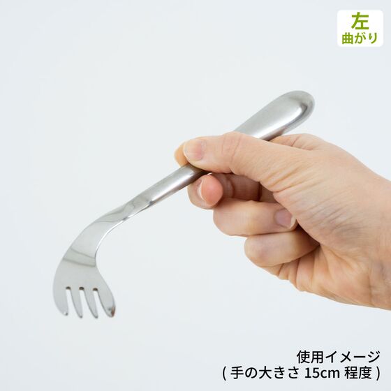左右に曲がっているタイプは、手や指の障害などで口元まで食事ができない方向け。 ライトチャイルドは洋食器を始めて使うお子様向けで、幼稚園・保育園などで年間約10万本販売しています。カトラリーのバランスがいいので長時間の快適にお食事できます。